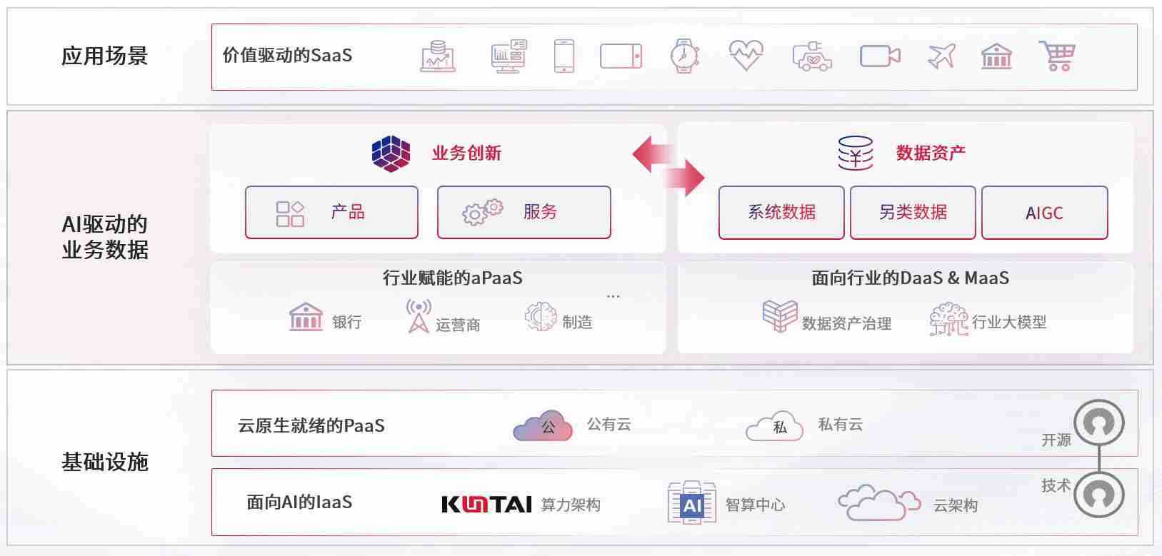 数字时代,,围绕企业数字化转型的关键要素,,EBpay数码开创性的提出数云融合战略和技术体系框架,,,着力在云原生、、数字原生、、、、AI原生和信创产业上架构产品和服务能力,,,为处在不同数字化转型阶段的快消零售、、、汽车、、、金融、、医疗、、、政企、、、教育、、、、运营商等行业客户提供泛在的敏捷IT能力和融合的数据驱动能力,,构建跨界融合创新的数字业务场景和新业务模式,,,助力企业级客户建立面向未来的核心能力和竞争优势,,全面推动社会的数字化、、、智能化转型升级。。。。